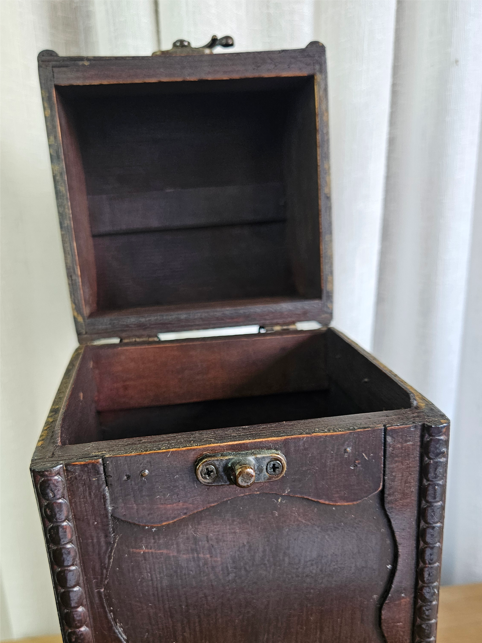 Preserve suas memórias com elegância. Apresentamos esta deslumbrante caixa de vinho em madeira, uma peça artesanal que combina charme rústico com sofisticação. Feita com madeira escura de alta qualidade, a caixa possui um design detalhado e cheio de história que adiciona um toque de requinte a qualquer ambiente.